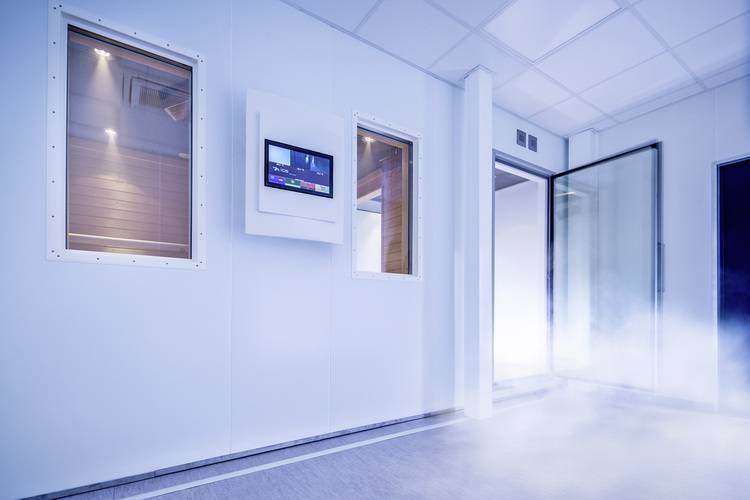 L&R projektiert die Tiefkälteanlagen für derartige Kältebäder und –kammern seit 25 Jahren für führende Hersteller der medizinischen Kryotherapie. Auch hier wird die Kälte kaskadiert bereitgestellt, weil es zwei Vorkammern von - 10 °C und - 60 °C gibt. Seit Juni 2020 vertreibt L&R Kältetechnik diese Anlagen direkt.