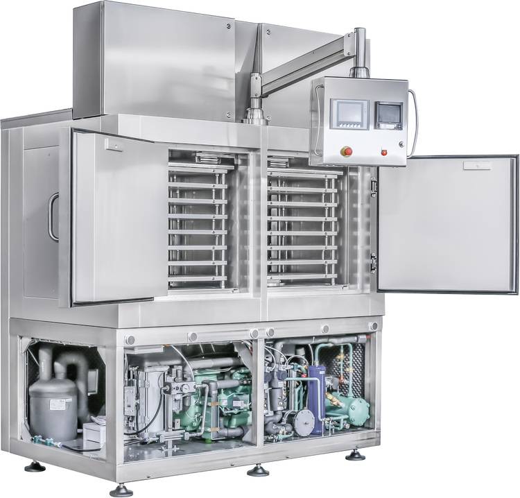 Er nutzt das Prinzip der Kontaktkühlung: Die Beutel werden in einem Kälteschrank auf Kontaktplatten gelegt, die vom Kühlmedium durchströmt werden. Ist der Schrank voll belegt, werden die Platten kontrolliert zusammengefahren, um eine möglichst große Kontaktfläche und damit einen intensiven Kälteübergang zu erreichen. Dieses hoch wirksame Kühlungskonzept überzeugt auch durch seine sehr gute Energieeffizienz – und es bewährt sich inzwischen in verschiedenen Anwendungsbereichen.