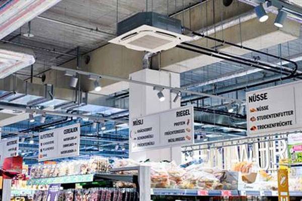 Die CO₂-Lösungen von Daikin, wie das CO2-Conveni-Pack und das CO2-Roundflow-Innengerät, sind insbesondere für Supermärkte und kleinere Einzelhandelsgeschäfte geeignet, die das Ziel haben, ihren Energieverbrauch und CO₂-Ausstoß zu senken. Die Wärmerückgewinnungsfunktion ist dabei ein wichtiger Faktor zur Reduzierung des Energieverbrauchs. Das Daikin CO₂-Conveni-Pack vereint Normal- und Tiefkühlung sowie Klimatisierung, Heizung und Belüftung in einem System und kann die durchschnittlichen Energiekosten um bis zu 10 % senken.