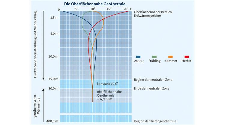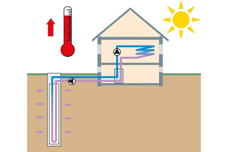 Bei der aktiven Kühlung wird die Wärmepumpe genutzt, allerdings in reversibler Betriebsweise, durch Prozessumkehrung des Kältekreises. Es ändert sich lediglich die Richtung des Wärmestroms (Umkehrung des Wärmestroms) durch die thermische Be- oder Entladung des Wärmeträgermediums (Heizwasser). Die Verhältnisse im oberflächennahen Untergrund zeigen, dass diese Temperaturen ausreichend kühl sind, um als passive Wärmesenke wirken zu können.