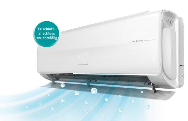 Dank des serienmäßigen Frischluftanschlusses mit einer Luftmenge von ca. 50 m³/h soll die Frischluftzufuhr ganzjährig gewährleistet sein. So können je nach Bedarf in klimatisierten Räumen die CO2-Rate reduziert, unangenehme Gerüche beseitigt oder die Einhaltung bestimmter Normen gewährleistet werden. Ein nur für die Ansaugung integrierter PM2.5-Feinstaubfilter sorgt zusätzlich für die nötige Reinheit der zugeführten Außenluft.