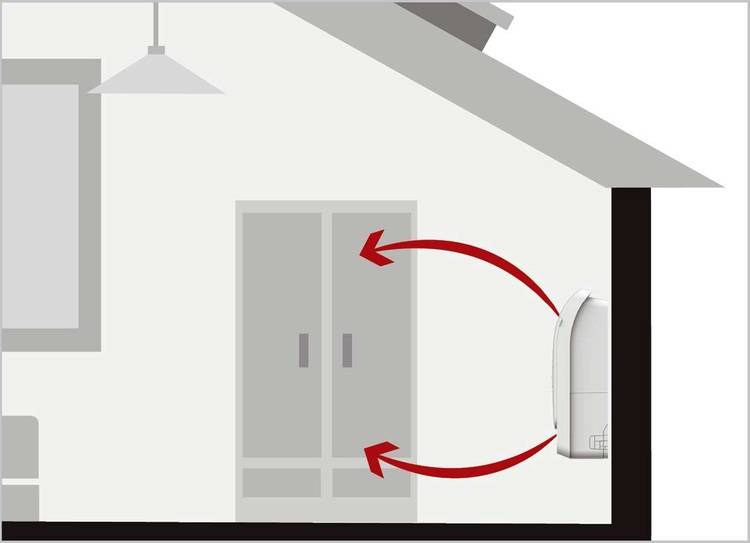 Die Inneneinheiten mit den Abmessungen 621/793/200 mm (H/B/T) werden wandseitig installiert. Zur Optimierung des Montageplatzes lassen sich die Anschlüsse in vier Richtungen positionieren. Die Luftabgabe in den Raum erfolgt normalerweise durch beide Lamellenöffnungen, um eine gleichmäßigere Luftdurchmischung zu erzielen. Der untere Luftaustritt kann deaktiviert werden.