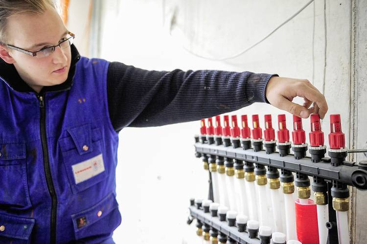 Um zu gewährleisten, dass die unterschiedlichen Heiz- und Kühlkreise den vorbestimmten Volumenstrom erhalten, ist es notwendig, die Hydraulik einzuregulieren. Hersteller solcher Systeme, wie beispielsweise Uponor, bieten hierzu einerseits regelungstechnische Komponenten an.