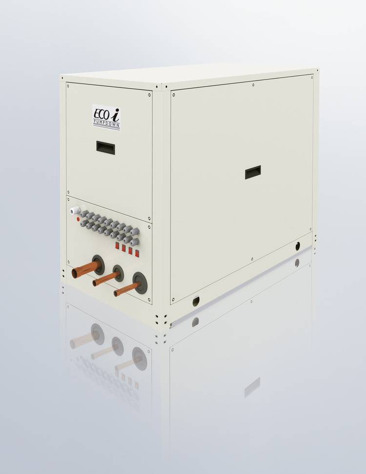 Dabei ist das Pump-Down-System nicht nur ein Kasten, in dem das Kältemittel im Leckagefall absaugt wird. Es handelt sich vielmehr um ein bereits betriebsfertig vorverdrahtetes System, inklusive kompletter Sensorik, intelligenter Regelung und einem Kältemittelsammler.