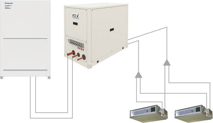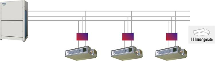 So muss z. B. in Hotels nicht für jede Etage ein eigener Kältekreis inklusive eines eigenen Gerätes geplant und installiert werden. Es lassen sich verschiedene Stockwerke zusammenfassen und über ein System versorgen.