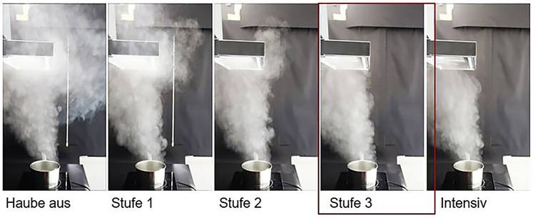 „Die Bauform der Dunstabzugshaube sowie deren Anordnung im Raum haben erheblichen Einfluss darauf, wie viel Wrasen erfasst wird und welcher Volumenstrom hierfür erforderlich ist“, erläutert Kah. Die Ergebnisse deuten darauf hin, dass zum Beispiel an der Wand montierte Dunstabzugshauben (Umluft und Abluft) im Vergleich zu Kochfeldabsaugungen schon mit deutlich geringeren Luftstufen eine vergleichbare Menge Wrasen erfassen.