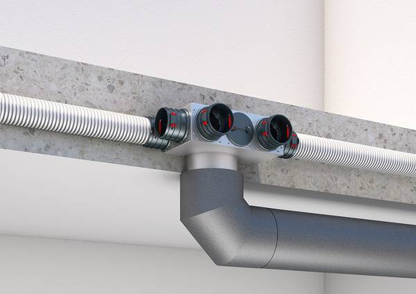 Wird die Kontrollierte Wohnraumlüftung von Beginn an eingeplant, so lässt sich zum Beispiel das Verteilersystem bequem in der Decke installieren: Der profi-air Flachverteiler 6-fach kann je nach Einbausituation inklusive Anbindesystem komplett in Beton eingelassen werden. Auf Ortbetondecken lässt sich der Flachverteiler mit dem profi-air classic Betonschalungsset DN160 schnell, einfach und sicher befestigen – und quasi unsichtbar, denn schließlich sind von der Installation nur zwei runde, plane Revisionsdeckel zu sehen.