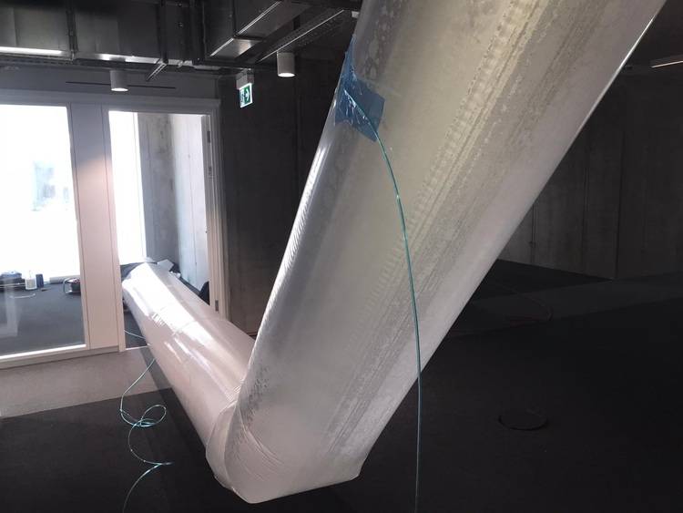 Nach Fertigstellung der Anlage zeigte sich bei einer Dichtheitsprüfung, dass in den Steigschächten die geforderte Dichtheitsklasse C nicht erreicht wird. Statt auf eine manuelle Abdichtung einzeln lokalisierter Undichtigkeiten zu setzen, wurde zur Abdichtung der Leckagen Aeroseal verwendet.