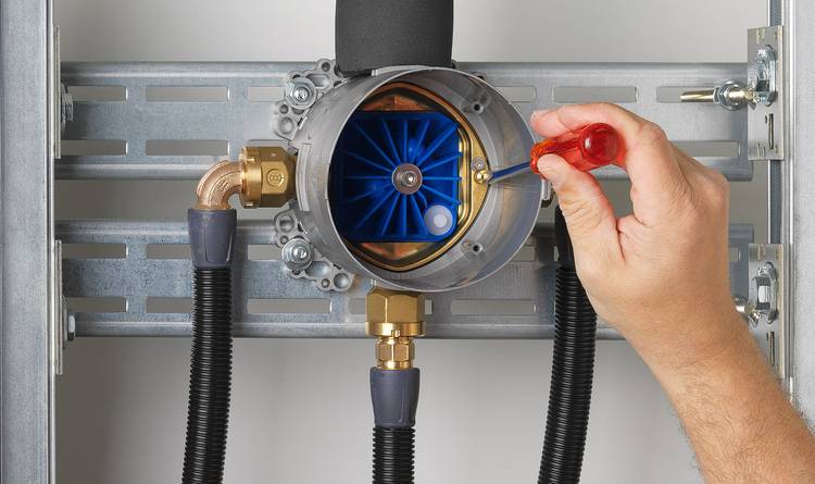 Die KWC Bluebox ist eine Komplettlösung für alle Armaturenlinien mit Unterputzmodellen. Sie erleichtert den gesamten Installationsprozess von der Roh- bis zur Fertigmontage.