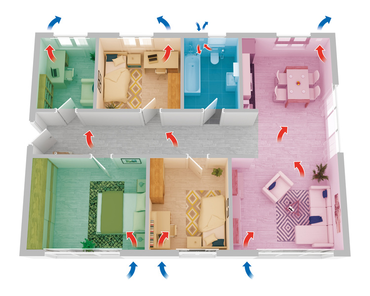 Es kann also passieren, dass die Entscheidung auf ein einfaches freies Lüftungssystem (wie z.B. Quer- und Schachtlüftung) fällt, welches nach den Vorgaben als normgerecht eingestuft wird, anstatt auf ein gegebenenfalls vereinfachtes, aber effizienteres ventilatorgestütztes System mit Wärmerückgewinnung, das eben nicht die Kriterien zur Nennlüftung aufweisen kann, oder nur knapp darunter liegt. Im Vergleich zu den freien Lüftungssystemen, sind ventilatorgestützte Systeme wesentlich kontrollierter und besser planbar, außerdem verringert sich der Anteil des Nutzereingreifens deutlich. Das bedeutet mehr Komfort für den Bewohner, aber gleichzeitig auch mehr Sicherheit für den Werterhalt seines Hauses. Außerdem ist eine venilatorgestützte Lüftung eine zuverlässige Investition in eine gesunde Raumluftqualität.
