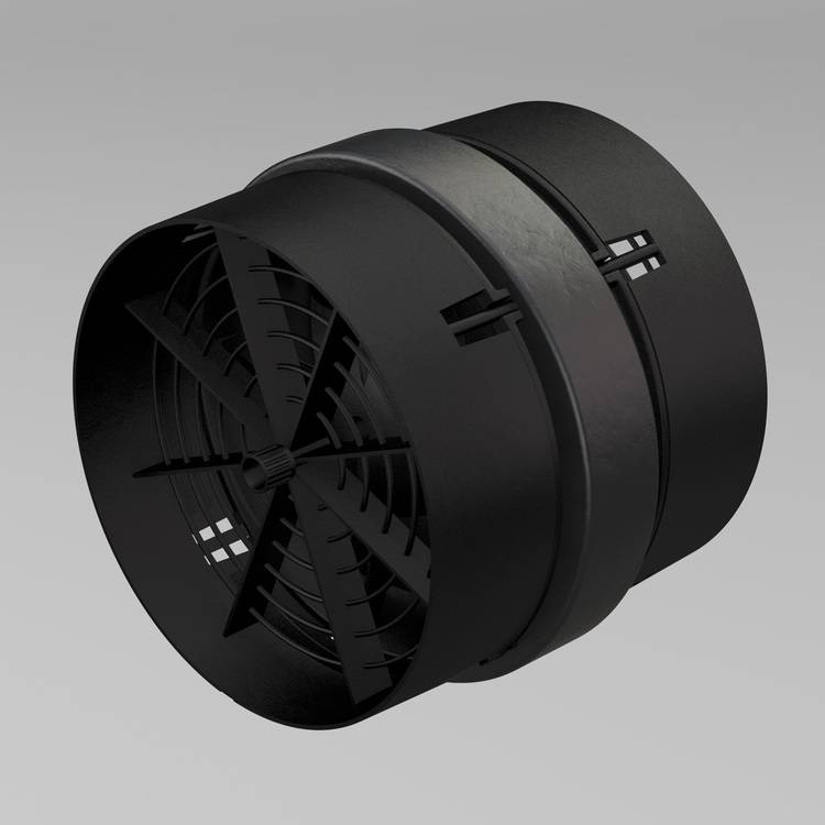 Bei der inVentron-Technologie wird der Reversierventilator, der gemeinsam mit dem Keramikwärmespeicher das Herzstück eines jeden iV-Lüftungssystems darstellt, zwischen luftführende Elemente gebettet. Da ein Reversierventilator seine Laufrichtung zyklisch ändert, ist bei einem reversierenden Lüftungssystem mehr als ein Luftleitwerk erforderlich. inVentron ist daher als Doppel-Luftleitwerk konzeptioniert und eliminiert dank der gezielten Strömungsausrichtung den sogenannten Totwasserbereich in beiden Luftrichtungen. Die Besonderheiten von periodischem Zuluft- und Abluftbetrieb wurden bei der Entwicklung berücksichtigt. Als Totwasser werden auch beim Medium Luft nicht durchströmte Bereiche bezeichnet. Diese treten bei dezentralen Lüftungssystemen mit Reversiertechnik insbesondere hinter der Ventilator-Nabe auf, was von essenzieller Bedeutung ist, da sich direkt hinter dem Ventilator der Wärmespeicher befindet. Durch den Einbau von inVentron wird die gesamte Keramik nun mithilfe des Doppel-Luftleitwerks effektiv durchströmt und das Wärmerückgewinnungspotenzial effizient ausgeschöpft.