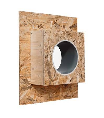 Woodplex besteht aus umweltfreundlichen Holzmaterialien und wird individuell gefertigt. Durch die Öffnung in der Mitte der Montagehilfe wird die Wandeinbauhülse des Lüfters geschoben. Sie ersetzt damit die Kernlochbohrung. Das spart kostbare Bauzeit und sorgt für einen unkomplizierten und fehlerfreien Einbau der Inventer-Lüftungssysteme.