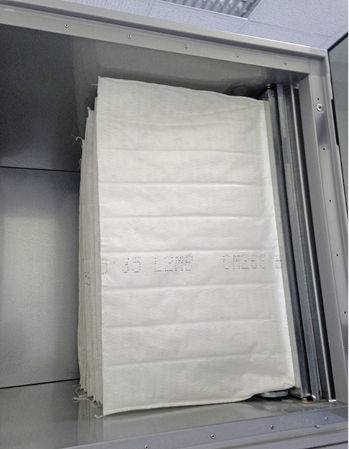 Die Wolf GmbH, Mainburg, hat schon seit mehreren Jahren in Zusammenarbeit mit einem Filterhersteller dieses Problem bearbeitet und eine hygienisch einwandfreie Lösung geschaffen. Der Filterstoff für die Filtertaschen wird nicht mehr rechteckig, sondern tailliert zugeschnitten, dadurch wird die Filtertasche (von der Öffnung aus gesehen) nicht nur in der Breite, sondern auch in der Höhe schmaler. Somit wird ein Aufliegen der unteren Naht auf dem Geräteboden bei Ventilatorstillstand vermieden (Bild 2).