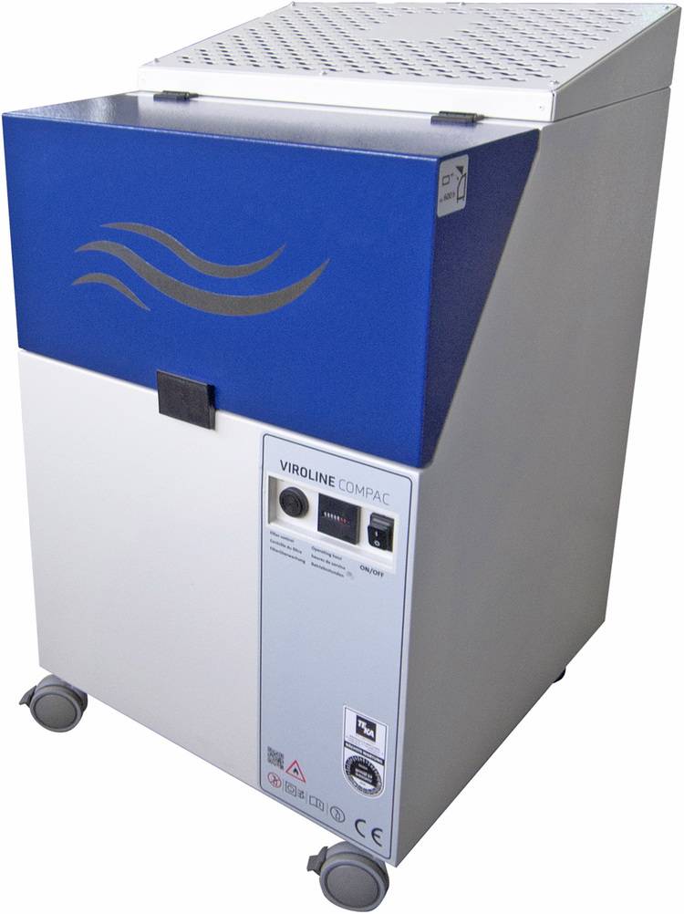 Stäube bzw. Aerosole werden anschließend in einem Mikro- bzw. H 14-Schwebstofffilter abgeschieden und die gereinigte Luft wieder dem Raum zugeführt. Es entsteht eine gleichmäßige Luftzirkulation, die kontinuierlich schadstoffhaltige Luft zum Gerät führt. Durch Entkeimung und Filterung schaffen die Viroline-Anlagen eine hohe Sicherheit und zuverlässig reine Luft. Dabei arbeiten alle Anlagen ruhig, energiesparend und sind wartungsarm.