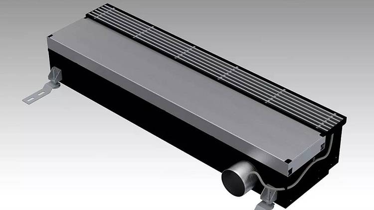 Indulfloor besteht aus einem Gehäuse mit integriertem Schalldämpfer und einer Mechanik zur raumseitigen Volumenstrom- und Ausblaseinstellung. Optional kann die Einstellung auch elektrisch mittels Stellantrieb oder Regler erfolgen. Der Luftdurchlass verfügt über einen asymmetrisch positionierten Luftanschlussstutzen und ein begehbares Lineargitter mit Auflagerahmen.