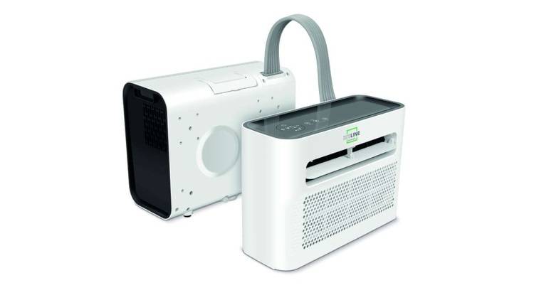 Die Mini-Klimaanlage verfügt über drei Betriebsarten – Kühlen, Umluft und Entfeuchten. Es handelt sich um ein Splitgerät, gegliedert in ein Außen- und ein Innenteil. Mit dem beiliegenden Montagezubehör lässt es sich an gängigen Ausstellfenstern befestigen, ganz ohne Bohrung.