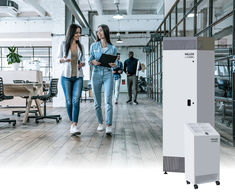Je nach Luftmenge haben Kunden bei Vallox die Wahl zwischen zwei mobilen Varianten und zwei Standgrößen. Abgestufte Gerätegrößen für Luftleistungen von 650 m³ bis 2200 m³ pro Stunde decken dabei die gängigen Raumgrößen ab. Dank Schalldämmkonzept und spezieller Luftführung wurden die Betriebsgeräusche der airCares Luftreiniger minimiert. Die Reinigung passiert im Inneren durch eine ganze Reihe an Filtern. Das Filtersystem mit Vorfiltration und Hochleistungsfilter HEPA 14 erfüllt mit einem Abscheidegrad von über 99,995% hohe Anforderungen.