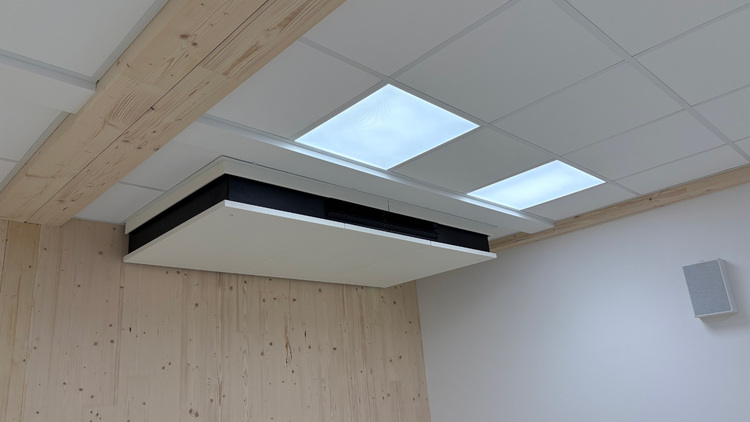 Das kompakte Gerät (Gesamthöhe: 362 mm) kann sowohl an Wand als auch Decke montiert werden: Eine Teilintegration in den Deckenspiegel, wie bei den Mönchengladbacher Modulbauklassenzimmern, ist ebenfalls möglich. „Wir wollten den Kindern möglichst viel Freiraum lassen“, so Sven Elsen. „Deswegen sind wir froh, dass die Lüftung platzsparend integriert ist und außerdem nicht den Unterrichtsbetrieb stört.“ Das liegt daran, dass das Gerät mit seinem niedrigen Schallpegel von höchstens 35 Dezibel flüsterleise im Betrieb bleibt – ideal in lärmsensiblen Umgebungen. Gleichzeitig ist das dezentrale Gerät unabhängig von der Gebäudetechnik der Bestandsgebäude.