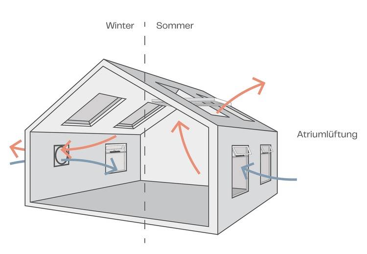 Unter bestimmten Umständen kann auch eine Hybridlüftung die richtige Lösung sein. Ihr Potenzial: Sie kombiniert die Vorteile der natürlichen und mechanischen Lüftung. Einen Großteil des Jahres erfolgt die Zufuhr von Frischluft und die Abkühlung des Gebäudes über die natürliche Lüftung, während die mechanische Lüftung beispielsweise in den kalten Wintermonaten eingesetzt wird, um den Wärmeverlust des Gebäudes zu reduzieren und die zugeführte Frischluft vorzuwärmen.