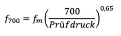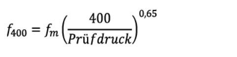 Werden Geräte mit einem von 400 Pa abweichenden Druck geprüft, müssen die Leckluftraten entsprechend umgerechnet werden. Zur Umrechnung ist folgende Formel anzuwenden: