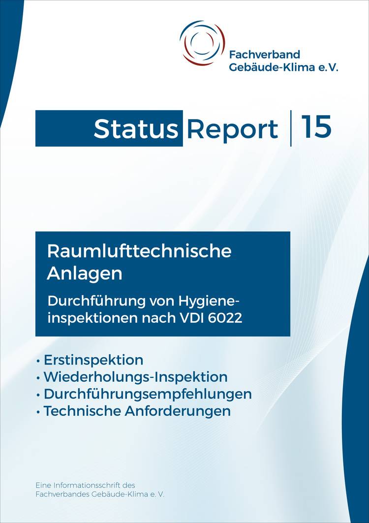 Der Status-Report des Fachverbands Gebäude-Klima FGK bietet wertvolle Informationen zu Erstinspektion, Wiederholungsinspektionen, Durchführungsempfehlungen und technischen Anforderungen. Die Hygiene-Erstinspektion ist verpflichtend an Anlagen durchzuführen, die fertiggestellt wurden und vor der Inbetriebnahme stehen, ebenso an Anlagen, welche im Bestand sind, aber an denen noch keine Erstinspektion durchgeführt wurde sowie nach wesentlichen Änderungen der Anlagen. Darüber hinaus wird eine Erstinspektion bei einem Betreiberwechsel zu Beginn der Betriebstätigkeit empfohlen. Die Wiederholungsinspektionen sind bei Raumlufttechnischen Anlagen mit Befeuchtung im Abstand von zwei Jahren und bei Anlagen ohne Befeuchtung im Abstand von drei Jahren verpflichtend.