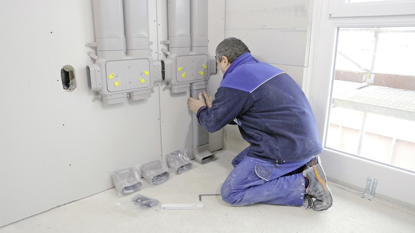 Dank flexibler Lüftungsrohre und einer komfortablen Verbindungstechnik kann das Luftverteilsystem einfach und schnell in den Baukörper integriert werden. Nach der Installation sind die Design-Abdeckgitter neben der Bedieneinheit die einzig sichtbaren Elemente. Die Installation erfolgt in diesen Arbeitsschritten: