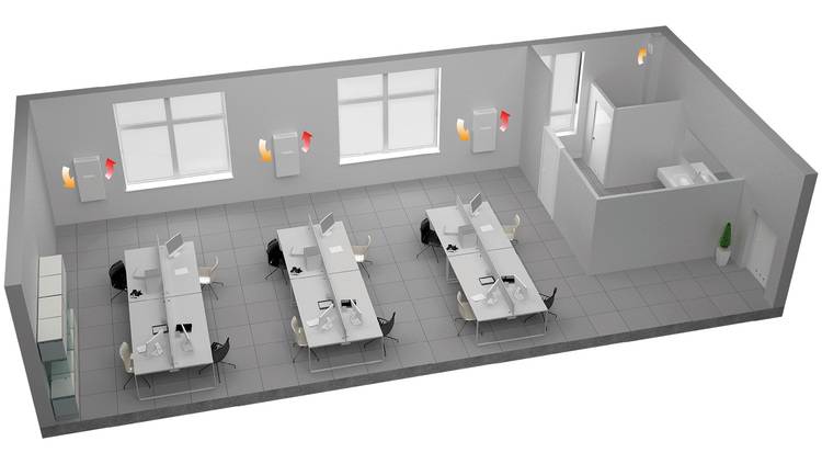 Zu beachten ist dabei, dass die Lüftungsanlagen an einer Außenwand montiert werden müssen, um die Räumlichkeiten mit ausreichend frischer Luft von draußen versorgen zu können. Um ein optimales Ergebnis zu erzielen und den Wohlfühlfaktor der Personen im Raum zu gewährleisten, ist es wichtig, die Anlage richtig im Raum zu positionieren. In der Praxis bedeutet das, Abstände zu Arbeitsplätzen einzuhalten und die Beschaffenheit der Räume in der Planung mit einzubeziehen.