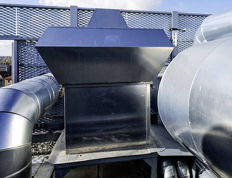 Bei der Auslegung der maschinellen Entrauchung bzw. Entlüftung ist jedoch der im Brandschutzkonzept vereinbarte Volumenstrom im Brandfall entscheidend. Die regelbaren EC-Motoren erlauben für die Entlüftung dann geringere Drehzahlen, um den passenden Luftwechsel zu erreichen.