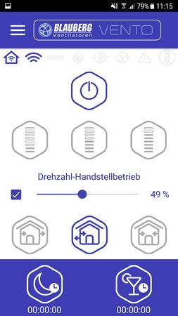 Über die App können die Anlagen ein- und ausgeschaltet werden. Darüber hinaus ist auch die Einstellung verschiedener Geschwindigkeitsstufen des Lüftungsbetriebs möglich. Zudem gibt es neben einem Regenerationsbetrieb auch eine Nacht- und Party-Schaltung auf einer zeitweise niedrigen beziehungsweise hohen Stufe. Die verschiedenen Modi können auch individuell gesteuert werden; eine stufenlose Regelung ermöglicht es, die Lüftung an die eigenen Vorlieben anzupassen.