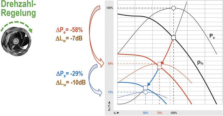 Für eine energiesparende und leise Lüftung sollte der Volumenstrom der in der Luft-, Kälte- und Klimatechnik eingesetzten Ventilatoren deshalb möglichst genau und effizient auf einen vorgegebenen Sollwert regelbar sein. Je nach Ventilatortyp und Anwendungsbereich kommen dafür unterschiedliche Methoden in Frage.