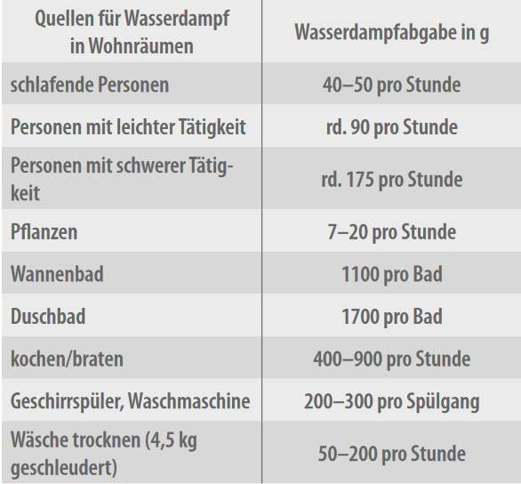Nebenbei schwankt übers Jahr auch noch der Feuchtegehalt der Luft. Im Sommer ist die Luft eher feucht, im Winter meist sehr trocken. Innerhalb des Hauses wird ebenfalls am Raumklima gedreht. Ein 4-Personen-Haushalt erzeugt beispielsweise täglich zwischen 8 und 15 kg Wasser.