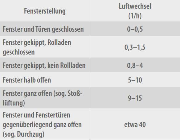 Welcher Luftwechsel sich unter welchen Fensterstellungen einstellen wird, zeigt die nächste Tabelle: