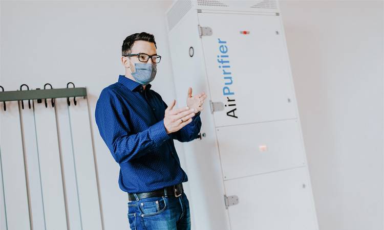 Ausgerüstet mit HEPA Hochleistungsfiltern ermöglicht der speziell für Klassenzimmer entwickelte Luftreiniger „AirPurifier“ eine effektive Abscheidung (gemäß DIN EN 1822) von 99,995 Prozent aller Bioaerosole, wozu auch Viren und Bakterien gehören, sowie weiterer Schadstoffe. Pro Stunde wird die Raumluft bis zu sechsmal gefiltert. Bauliche Maßnahmen sind für die Installation nicht notwendig, lediglich ein herkömmlicher Steckdosenanschluss wird benötigt.