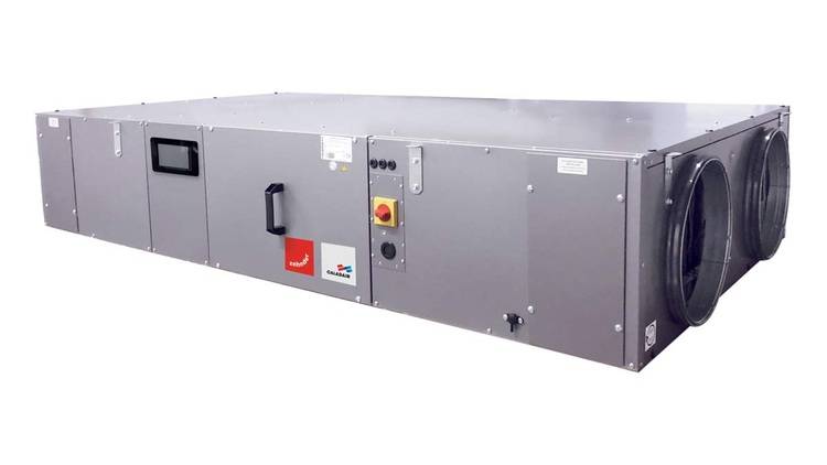 Vervollständigt wird das Großgeräte-Portfolio durch das dezentrale Kompaktgerät Zehnder Eversky, das sich raumweise nachrüsten lässt und selbst Räume mit hoher Personenbelegung effizient belüftet.
