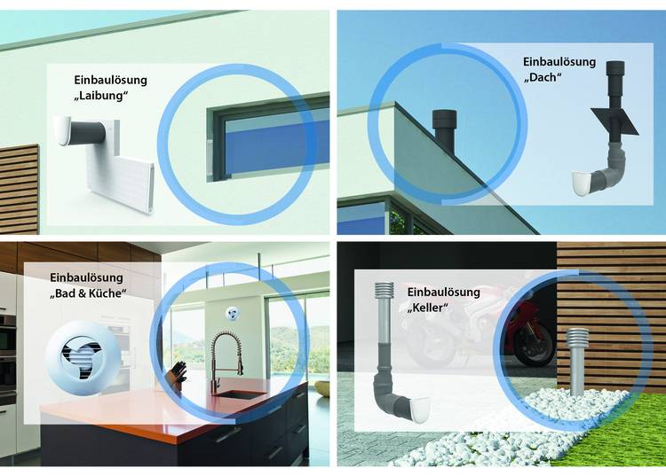 Gegen feuchte und muffig riechende Luft im Keller empfiehlt der Hersteller seine Einbaulösung "Keller". Über einen unauffälligen Edelstahl-Luftauslass oberhalb des Bodenniveaus wird die verbrauchte Luft aus den Kellerräumen geleitet und Frischluft zugefügt. Das System beugt Schimmelbildung vor und erreicht eine Wärmerückgewinnung von bis zu 91%.