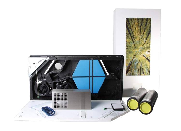 Das saubere Raumklima wird dabei energiesparend über zwei volumenstromkonstante EC-Radialventilatoren erzeugt (Energieeffizienzklasse A): Im Außenluftkanal saugt ein Ventilator frische Außenluft an und befreit sie über einen G4-Filter von Pollen und anderen Verunreinigungen.