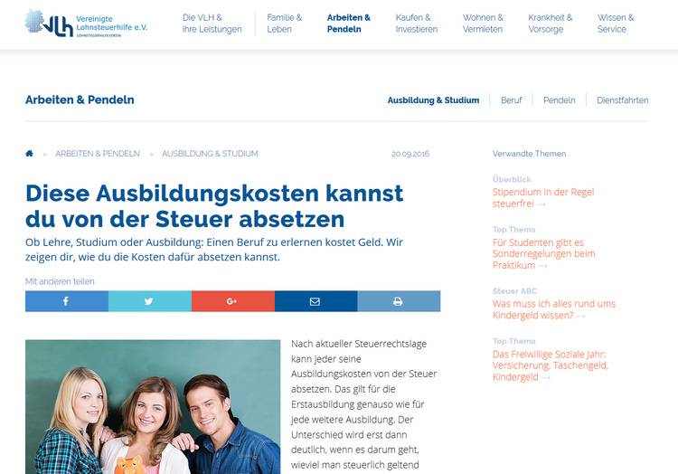 Steuerhilfe, die zweite: Welche Ausbildungskosten lassen sich von der Steuer absetzen, wo liegt der Unterschied zwischen erster und zweiter Ausbildung? Auf der Webseite der Vereinigten Lohnsteuerhilfe e. V. finden sich die Antworten darauf, welche Kosten von der Steuer abgesetzt werden können.