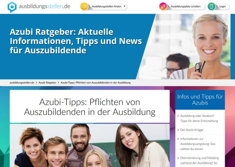 Aktuelle Neuigkeiten, Informationen und Tipps für Auszubildende gibt es auf ausbildungsstellen.de. Während der Ausbildung müssen angehende Fachkräfte auch bestimmte Pflichten beachten. Dazu gehört beispielsweise das Wissen, welche Tätigkeiten ausgeführt werden müssen und welche wiederum abgelehnt werden können. Oder die Frage, was im Krankheitsfalle beachtet werden muss. Einen Überblick über die wichtigsten Pflichten finden Auszubildende in einem kurzen Ratgeber-Beitrag auf der Seite.