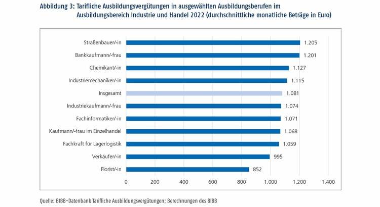 Insgesamt hat das BIBB Vergütungsdurchschnitte für 171 Berufe in Westdeutschland und 111 Berufe in Ostdeutschland berechnet. Generell wurden in die Berechnungen nur diejenigen Wirtschaftsbereiche einbezogen, in denen entsprechende Tarifverträge existieren.