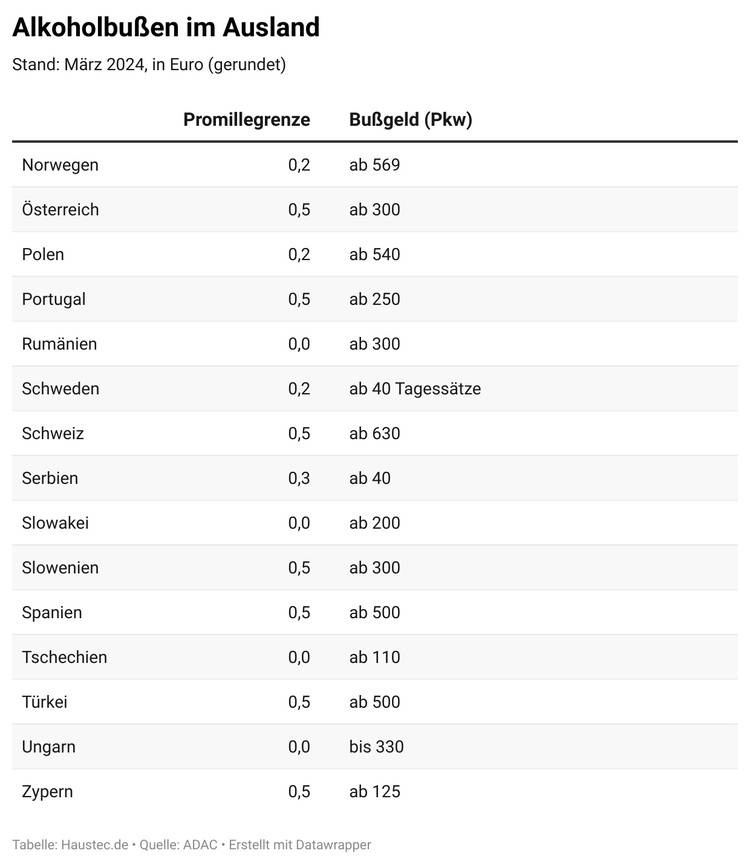 In Deutschland gilt eine Promillegrenze von 0,5 für erwachsene Pkw-Fahrer. Ab da wird es teuer, ab 500 Euro kann ein Verstoß kosten. Damit liegt Deutschland im Durchschnitt Europas. Die meisten Ländern haben dieselbe Promillegrenze. Ausnahmen sind beispielsweise Tschechien, Ungarn, Rumänien und die Slowakei. Hier gilt eine strenge 0,0 Promillegrenze.