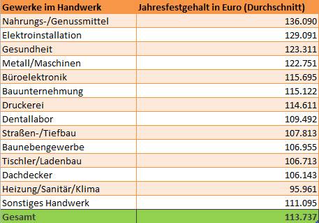 Lesen Sie auch: Gehälter im Handwerk 2018: Das verdienen GmbH-Chefs