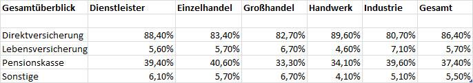 Sonstige Leistungen wie etwa Direktversicherungen spielen bei fast allen Vergütungen eine wichtige Rolle. Mehr als 80 Prozent beziehen eine Direktversicherung, ein kleiner Prozentsatz hat an seine Tätigkeit sogar eine Lebensversicherung geknüpft.