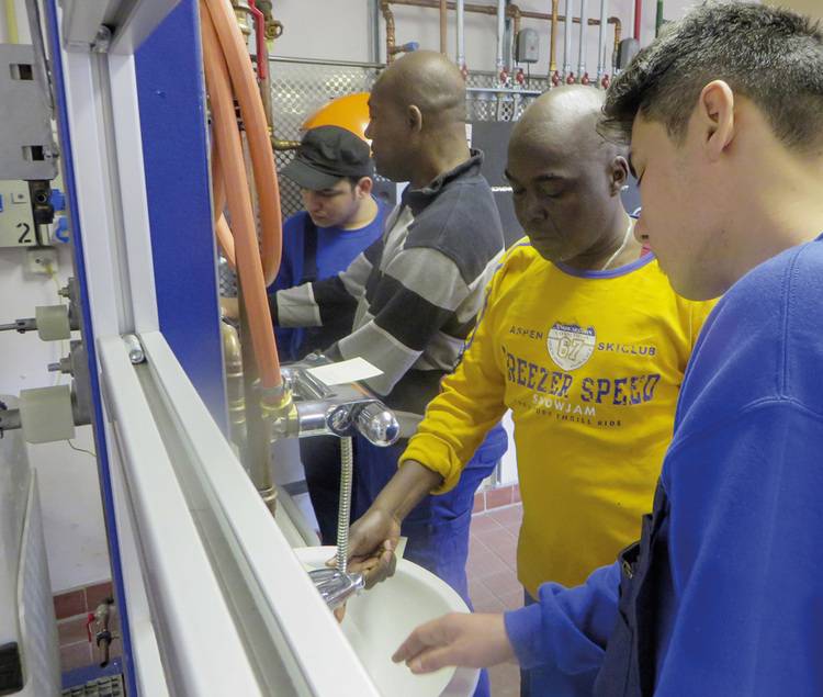 Mit der Entscheidung für den Ausbildungsberuf Anlagenmechaniker durchläuft der Zugewanderte dann eine mehrwöchige Betriebsphase, um Betriebsstrukturen besser zu verinnerlichen. Sozialpädagogische und fachsprachliche Begleitung werden kontinuierlich flankierend angeboten. Die integrierte Vermittlung berufsbezogener Fach- und Sprachkenntnisse ist ein zentraler Bestandteil des BOF-Konzepts. Seit 2017 durchliefen rund 100 Zugewanderte in zehn Kursen das BOF-Programm der Berliner Innung. Aktuell sind acht Teilnehmer dabei. Die nächsten Durchgänge beginnen dann 2022.