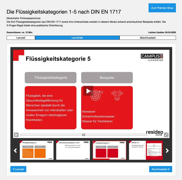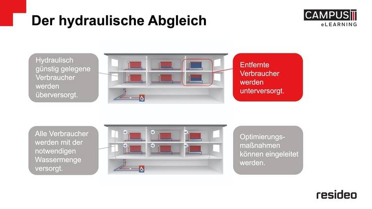 Die neue eLearning-Plattform ist für das selbstständige, digitale Lernen konzipiert. Vermittelt wird Basiswissens zur Wasser- und Wärmetechnik – für ein solides Fundament im Installationsalltag. Die kompakten Module laden die Nutzer dazu ein, größere und kleinere Wissenslücken zu schließen. Das Selbststudium wird durch die übersichtliche Gestaltung der Plattform unterstützt: Jedem Modul geht eine Definition des jeweiligen Lernziels voran, gefolgt von den eigentlichen Inhalten. Dieser wird dem Lernenden verständlich und anschaulich anhand von Animationen und Grafiken erläutert. Am Ende folgt ein Abschlusstest, der spielerisch das Gelernte festigt. So gelingt es Resideo, eine weitere örtlich und zeitlich ungebundene Möglichkeit zur Fortbildung zu schaffen – ganz im Geiste des digitalen Zeitalters. Die Plattform startet zunächst mit einigen Basismodulen, befindet sich jedoch stetig im Ausbau, um möglichst viele Themenfelder abdecken zu können.