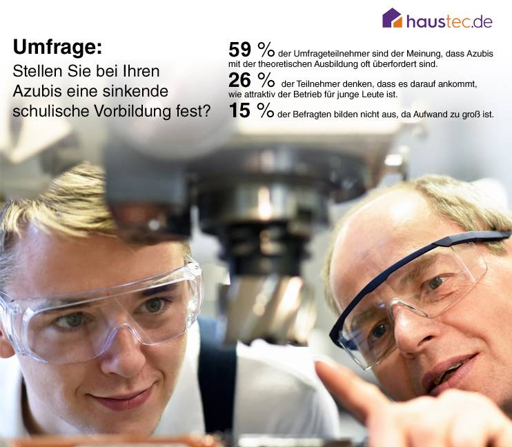 - Mehr als die Hälfte der Umfrageteilnehmer (59 Prozent) sind der Meinung, dass das Handwerk die schlechten Schüler abbekommt. Diese seien dann häufig mit der theoretischen Ausbildung überfordert und würden ihre Ausbildung abbrechen.