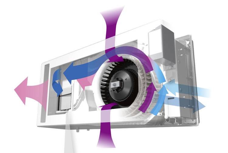 Mit 15 bis maximal 37 db(A) ist das VL-50E insbesondere in den unteren Lüftungsstufen für das menschliche Ohr nicht mehr hörbar. Das Gerät entspricht damit höchsten Anforderungen an den Schallschutz in Wohnräumen. Ein besonderer Vorteil ist die Flexibilität in der Installation. Sowohl waagerecht als auch senkrecht ist die Montage besonders raumsparend umsetzbar.
