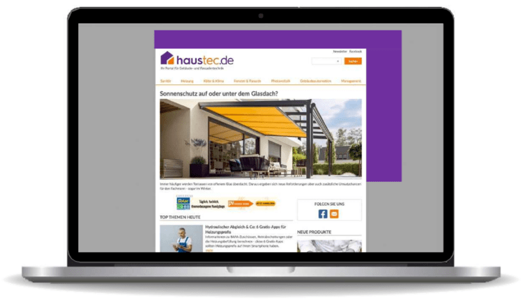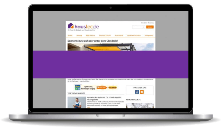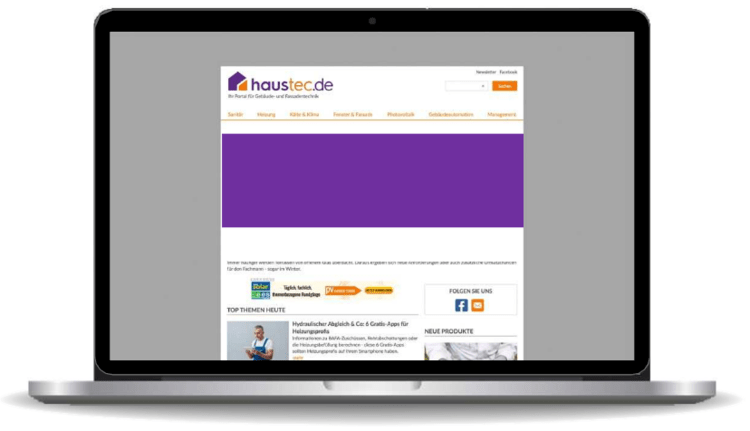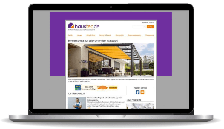 haustec.de bietet Ihnen für jede Kampagne das richtige Format - von einfachen Bannern bis hin zu kompletten Homepage-Events. Und das in der klassischen Desktop-Version oder in der mobilen Ansicht auf dem Smartphone oder Tablet. Wir stellen Ihnen gerne jederzeit ein maßgeschneidertes Angebot zusammen.