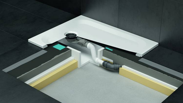 Erreicht wird das durch die Vorfertigung. Die Installationsbox Easy Connect wird als Platzhalter für die Ablauf- oder Überlaufgarnitur auf den Boden gesetzt, an die Abwasserleitung angeschlossen und mit dem mitgelieferten Deckel verschlossen. Danach werden Trittschall- und Wärmedämmung hergestellt und der Estrich eingebracht. Ist der Estrich trocken, kann die Box auf die erforderliche Höhe zugeschnitten und eine vorkonfektionierte Dichtmanschette aufgesetzt werden. Eine Unterfütterung zur Anpassung an unterschiedliche Höhenniveaus ist nicht notwendig, die Einbauhöhe kann flexibel zwischen 105 und 205 mm gewählt werden.