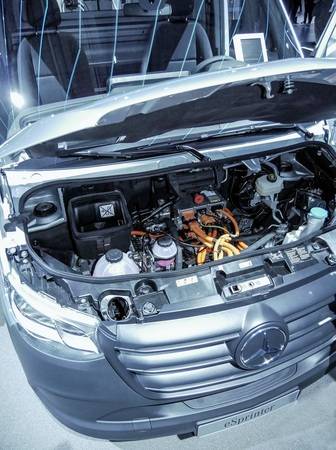 Während der Kompakttransporter eVito bereits an erste Kunden ausgeliefert wird, befindet sich der Sprinter mit Elektroantrieb noch in der Erprobung. Logistiker Hermes ist am Feldversuch beteiligt, um den eSprinter markttauglich zu machen. Marktstart soll 2019 sein. Mit einer Batteriekapazität von 55 kWh wird die voraussichtliche Reichweite maximal 150 km betragen (Zuladung max. 900 kg). Mit der zweiten Batterieoption lassen sich andere Prioritäten setzen: Durch ein Kraftpaket von nur 41 kWh verringert sich zwar die Reichweite auf rund 115 km, doch die Nutzlast steigert sich dadurch auf max. 1040 kg. Der Elektroantrieb im großen Mercedes-Transporter leistet 85 kW und nimmt gegenüber einem herkömmlichen Verbrenner deutlich weniger Platz im Motorraum ein.