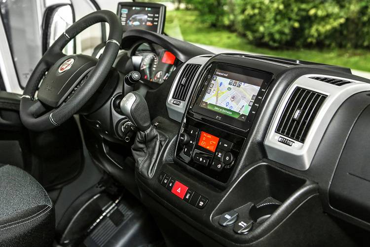 Wer die Alternative durch E-Mobilität sucht, findet inzwischen auch beim Ducato entsprechende Möglichkeiten. In Kombination mit dem E-Motor sind allein für den Kastenwagen drei Radstände und zwei Dachhöhen verfügbar, sodass sich Frachtraumgrößen bis max. 17 m3 ergeben. Für den Frontantrieb sind 90 kW/122 PS bei einem Spitzendrehmoment von 280 Newtonmeter angegeben – eine solche Kraftentfaltung findet man bereits in der Lieferwagenklasse und ist daher für einen 3,5-Tonner nicht beeindruckend.